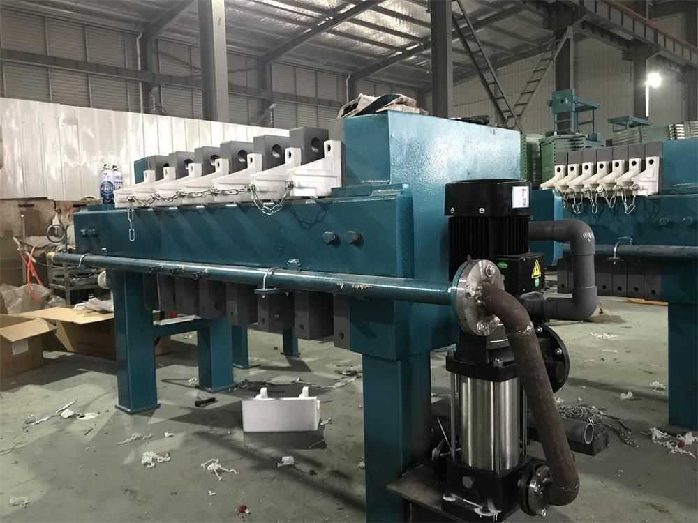 泵機(jī)一體式板框壓濾機(jī),是進(jìn)料泵和壓濾機(jī)直接管道連接好的便捷壓濾機(jī)。優(yōu)點(diǎn)是客戶安裝方便,節(jié)省現(xiàn)場(chǎng)空間,過(guò)濾速度快、泥餅含水率低。